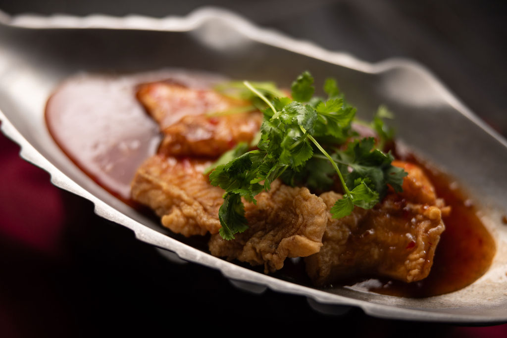 Fried frog legs in garlic, served with sweet chilli sauce, Thai style
